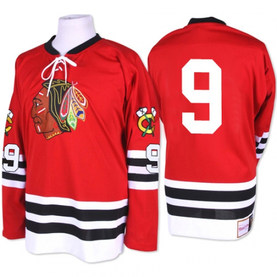 Home>NHL>Chicago Blackhawks>Bobby Hull>Men's Mitchell and Ness Chicago Blackhawks #9 Bobby Hull Premier Red 1960-61 Throwback NHL Jersey