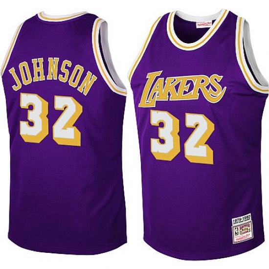 Men's Mitchell and Ness Los Angeles Lakers #32 Magic Johnson Authentic Purple Throwback NBA Jersey