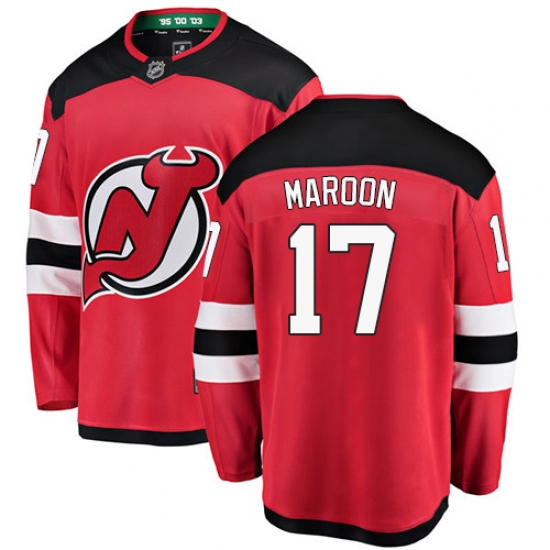 >Men's New Jersey Devils #17 Patrick Maroon Fanatics Branded Red Home Breakaway NHL Jersey