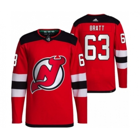 Men's Adidas New Jersey Devils #63 Jesper Bratt Authentic Red Home NHL Jersey