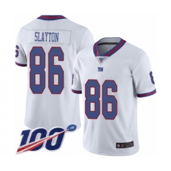 >Men's New York Giants #86 Darius Slayton Limited White Rush Vapor Untouchable 100th Season Football Jersey