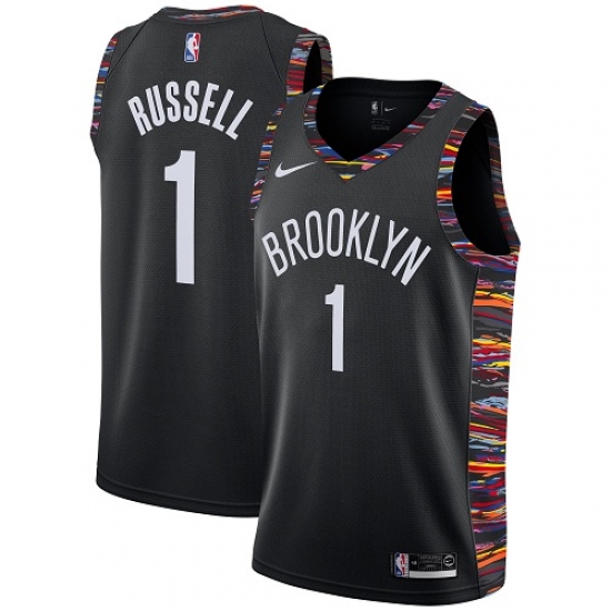 >Men's Nike Brooklyn Nets #1 D'Angelo Russell Swingman Black NBA Jersey - 2018 19 City Edition