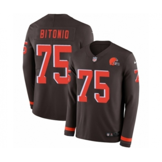 Men's Nike Cleveland Browns #75 Joel Bitonio Limited Brown Therma Long Sleeve NFL Jersey