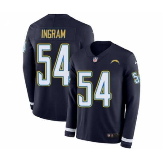 >Men's Nike Los Angeles Chargers #54 Melvin Ingram Limited Navy Blue Therma Long Sleeve NFL Jersey