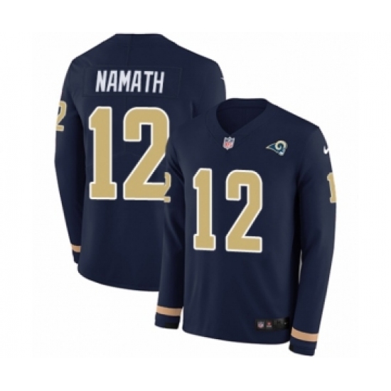 Men's Nike Los Angeles Rams #12 Joe Namath Limited Navy Blue Therma Long Sleeve NFL Jersey