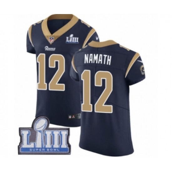Men's Nike Los Angeles Rams #12 Joe Namath Navy Blue Team Color Vapor Untouchable Elite Player Super Bowl LIII Bound NFL Jersey