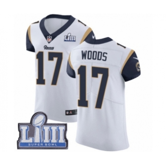 >Men's Nike Los Angeles Rams #17 Robert Woods White Vapor Untouchable Elite Player Super Bowl LIII Bound NFL Jersey
