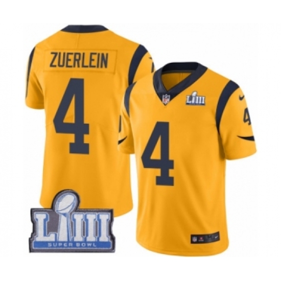 >Men's Nike Los Angeles Rams #4 Greg Zuerlein Limited Gold Rush Vapor Untouchable Super Bowl LIII Bound NFL Jersey