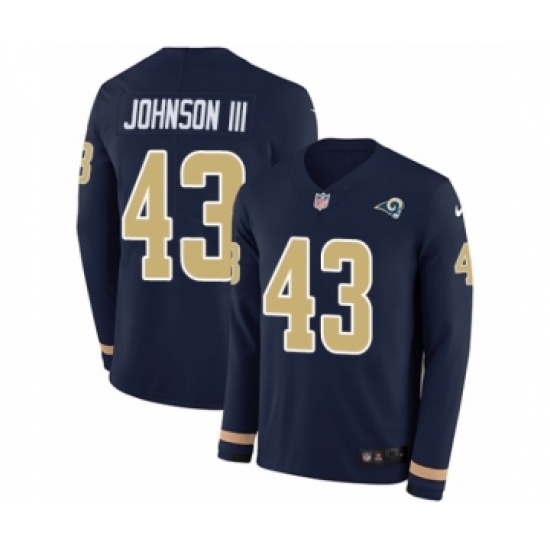 >Men's Nike Los Angeles Rams #43 John Johnson Limited Navy Blue Therma Long Sleeve NFL Jersey