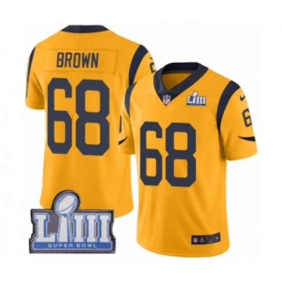 Men's Nike Los Angeles Rams #68 Jamon Brown Limited Gold Rush Vapor Untouchable Super Bowl LIII Bound NFL Jersey