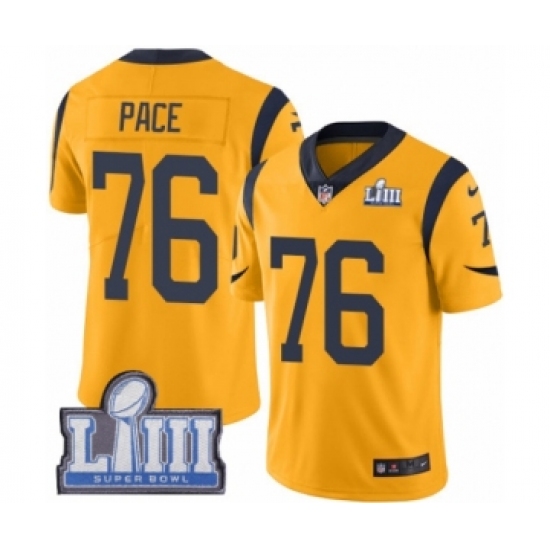 >Men's Nike Los Angeles Rams #76 Orlando Pace Limited Gold Rush Vapor Untouchable Super Bowl LIII Bound NFL Jersey