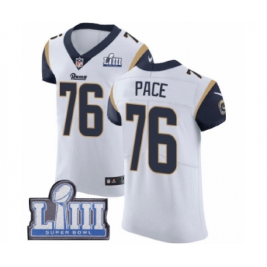 Men's Nike Los Angeles Rams #76 Orlando Pace White Vapor Untouchable Elite Player Super Bowl LIII Bound NFL Jersey