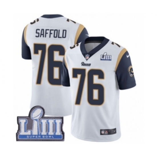 Men's Nike Los Angeles Rams #76 Rodger Saffold White Vapor Untouchable Limited Player Super Bowl LIII Bound NFL Jersey