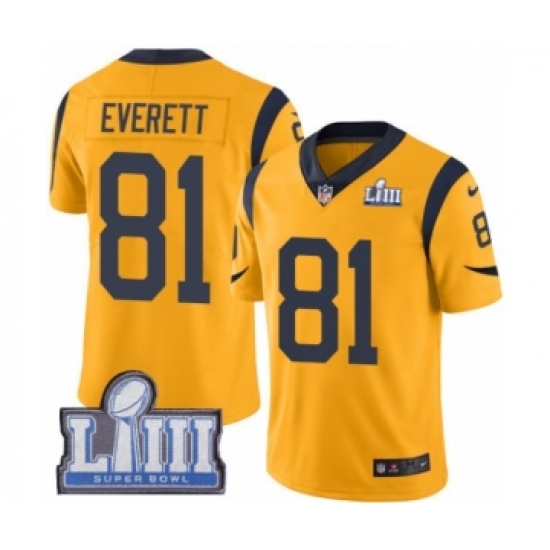 >Men's Nike Los Angeles Rams #81 Gerald Everett Limited Gold Rush Vapor Untouchable Super Bowl LIII Bound NFL Jersey