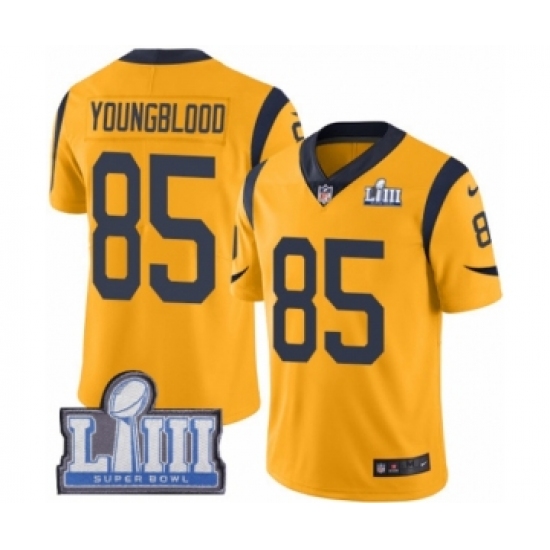 >Men's Nike Los Angeles Rams #85 Jack Youngblood Limited Gold Rush Vapor Untouchable Super Bowl LIII Bound NFL Jersey