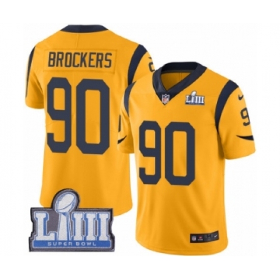 >Men's Nike Los Angeles Rams #90 Michael Brockers Limited Gold Rush Vapor Untouchable Super Bowl LIII Bound NFL Jersey