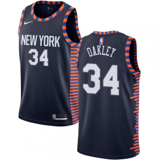 >Men's Nike New York Knicks #34 Charles Oakley Swingman Navy Blue NBA Jersey - 2018 19 City Edition