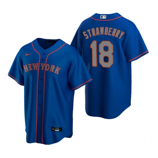 >Men's Nike New York Mets #18 Darryl Strawberry Royal Alternate Road Stitched Baseball Jersey
