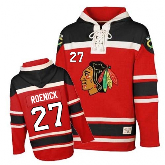 Men's Old Time Hockey Chicago Blackhawks #27 Jeremy Roenick Premier Red Sawyer Hooded Sweatshirt NHL Jersey