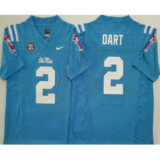 Men's Ole Miss Rebels #2 Jaxson Dart Powder Blue F.U.S.E. Stitched Football Jersey