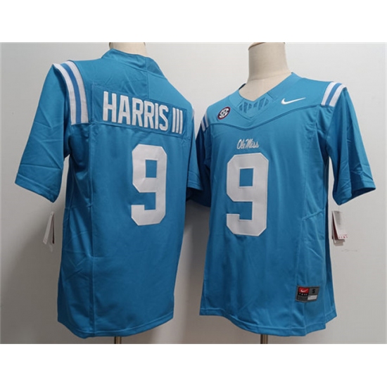 >Men's Ole Miss Rebels #9 Tres Harris III Powder Blue F.U.S.E. Stitched Football Jersey