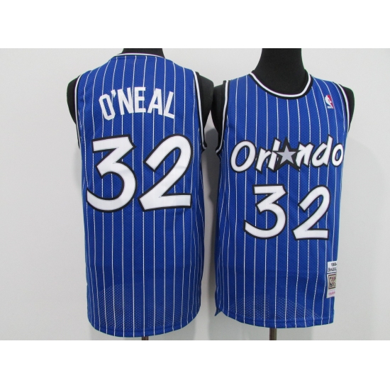 Men's Orlando Magic #32 Shaquille O'Neal Authentic Blue Hardwood Classics Basketball Jersey