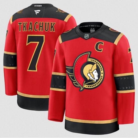 Men's Ottawa Senators #7 Brady Tkachuk Red Alternate With C Stitched Hockey Jersey