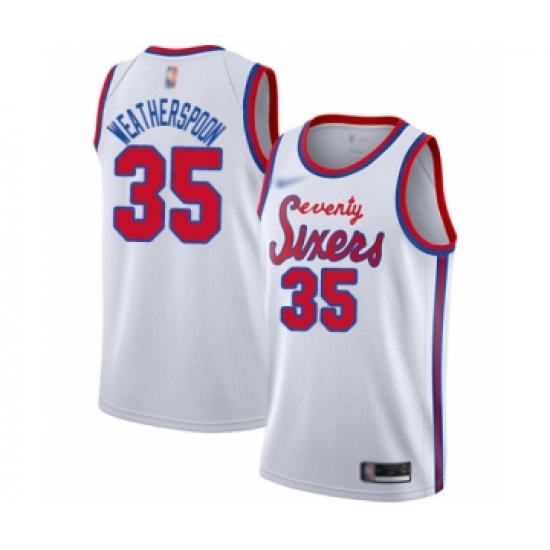 Men's Philadelphia 76ers #35 Clarence Weatherspoon Authentic White Hardwood Classics Basketball Jersey
