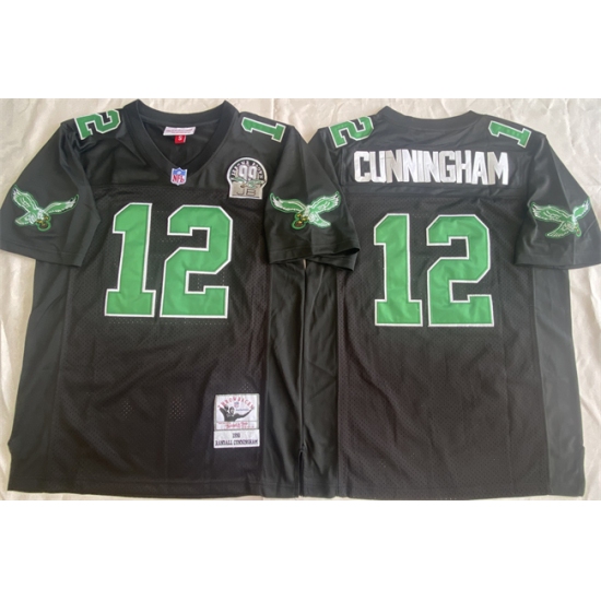 Men's Philadelphia Eagles #12 Randall Cunningham Black Throwback Stitched Football Jersey