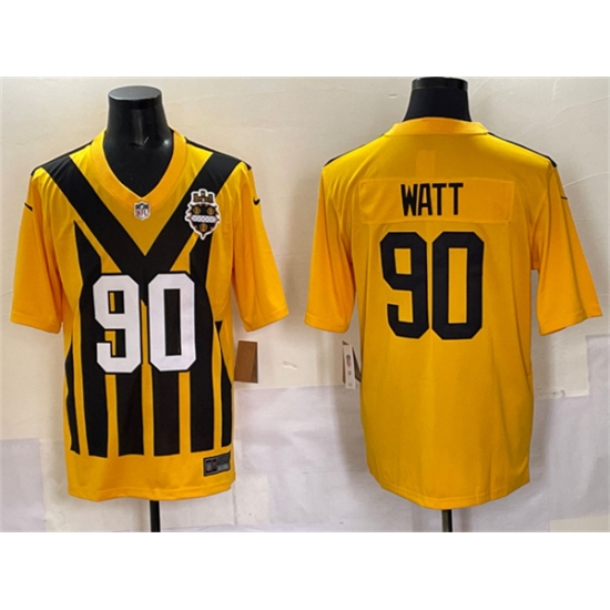 Men's Pittsburgh Steelers #90 T.J. Watt Gold 1933 Throwback Alternate Football Stitched Game Jersey