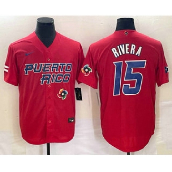 >Men's Puerto Rico Baseball #15 Emmanuel Rivera 2023 Red World Classic Stitched Jerseys