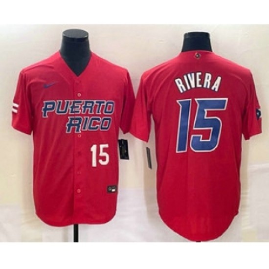 >Men's Puerto Rico Baseball #15 Emmanuel Rivera Number 2023 Red World Classic Stitched Jersey