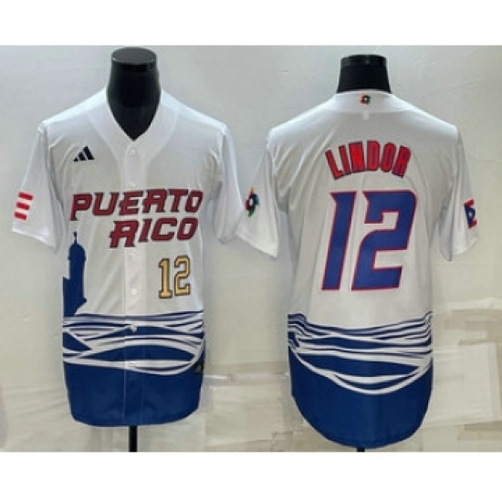 Youth Puerto Rico Baseball #12 Francisco Lindor Number 2023 White World Baseball Classic Stitched Jerseys