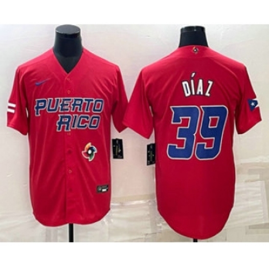 Men's Puerto Rico Baseball #39 Edwin Diaz 2023 Red World Baseball Classic Stitched Jerseys