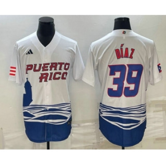 Men's Puerto Rico Baseball #39 Edwin Diaz 2023 White World Baseball Classic Stitched Jersey