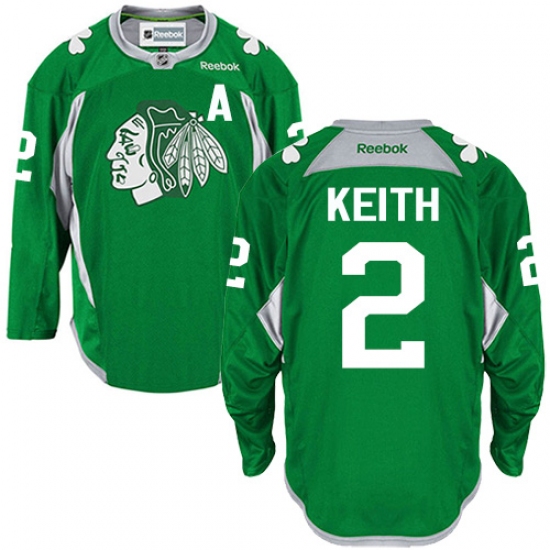 Men's Reebok Chicago Blackhawks #2 Duncan Keith Authentic Green Practice NHL Jersey