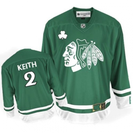 Men's Reebok Chicago Blackhawks #2 Duncan Keith Authentic Green St Patty's Day NHL Jersey