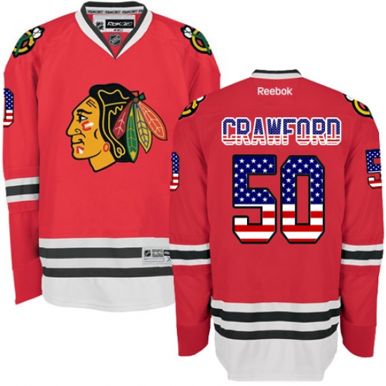 Home>NHL>Chicago Blackhawks>Corey Crawford>Men's Reebok Chicago Blackhawks #50 Corey Crawford Authentic Red USA Flag Fashion NHL Jersey