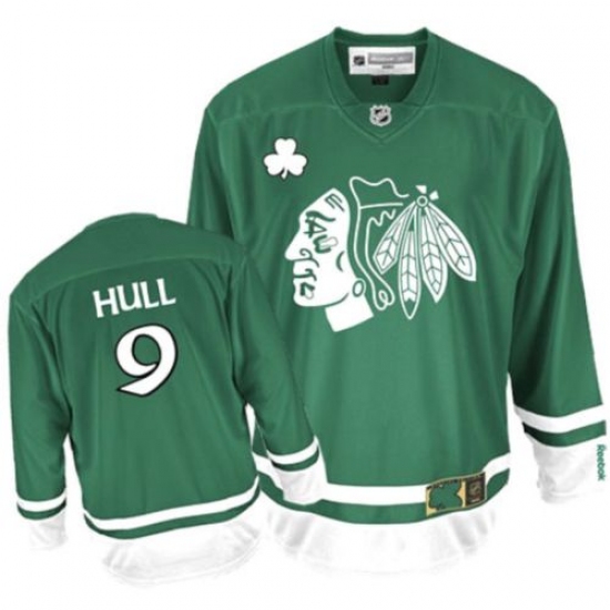 Men's Reebok Chicago Blackhawks #9 Bobby Hull Authentic Green St Patty's Day NHL Jersey