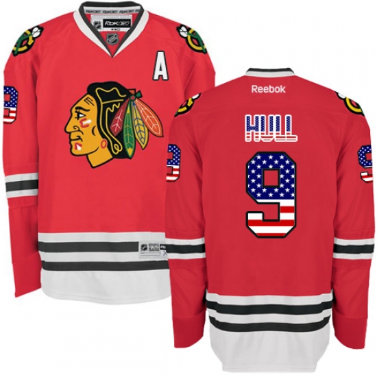 Home>NHL>Chicago Blackhawks>Bobby Hull>Men's Reebok Chicago Blackhawks #9 Bobby Hull Authentic Red USA Flag Fashion NHL Jersey