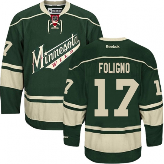 Home>NHL>Minnesota Wild>Marcus Foligno>Men's Reebok Minnesota Wild #17 Marcus Foligno Premier Green Third NHL Jersey