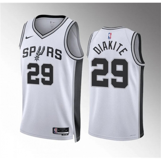 >Men's San Antonio Spurs #29 Mamadi Diakite White Association Edition Stitched Basketball Jersey