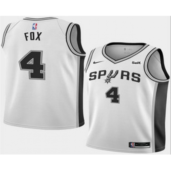 >Men's San Antonio Spurs #4 DeAaron Fox White 2025 Association Edition Stitched Jersey