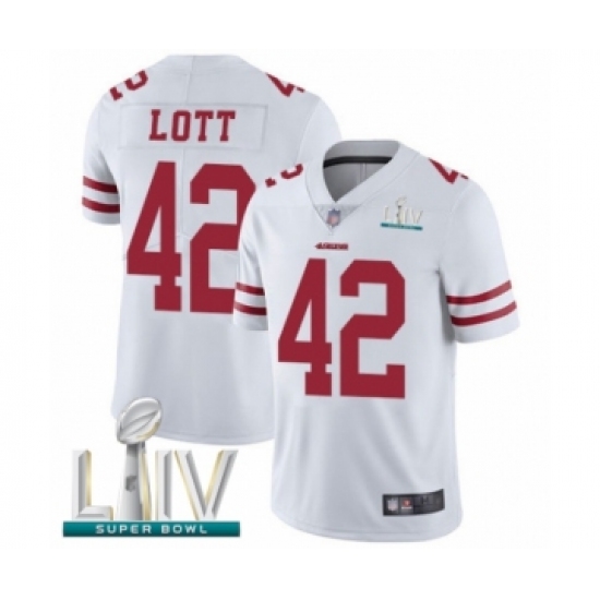 Men's San Francisco 49ers #42 Ronnie Lott White Vapor Untouchable Limited Player Super Bowl LIV Bound Football Jersey