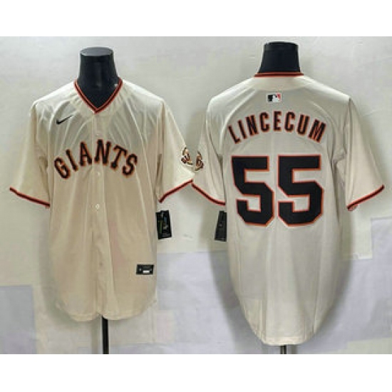 >Men's San Francisco Giants #55 Tim Lincecum Cream Limited Stitched Jersey
