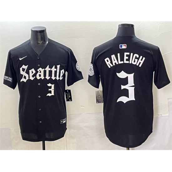 >Men's Seattle Mariners #3 Cal Raleigh Black 'Deep Sea Gothic Edition' Vapor Premier Limited Stitched Baseball Jersey