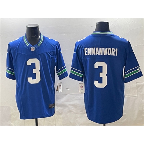 Men's Seattle Seahawks #3 Nick Emmanwori Royal 2024 F.U.S.E Throwback Vapor Limited Football Stitched Jersey