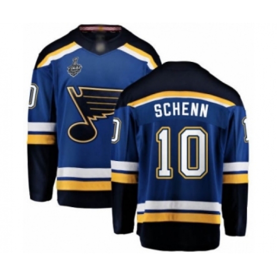 >Men's St. Louis Blues #10 Brayden Schenn Fanatics Branded Royal Blue Home Breakaway 2019 Stanley Cup Final Bound Hockey Jersey