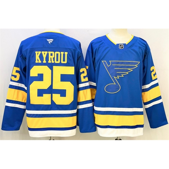 Men's St. Louis Blues #25 Jordan Kyrou Blue 2025 Stitched Hockey Jersey