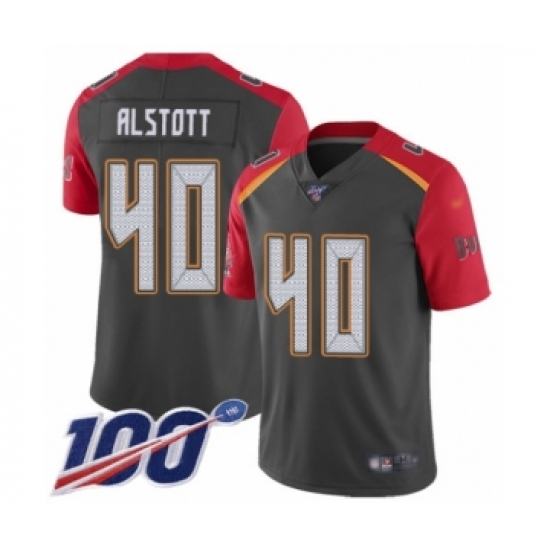 >Men's Tampa Bay Buccaneers #40 Mike Alstott Limited Gray Inverted Legend 100th Season Football Jersey